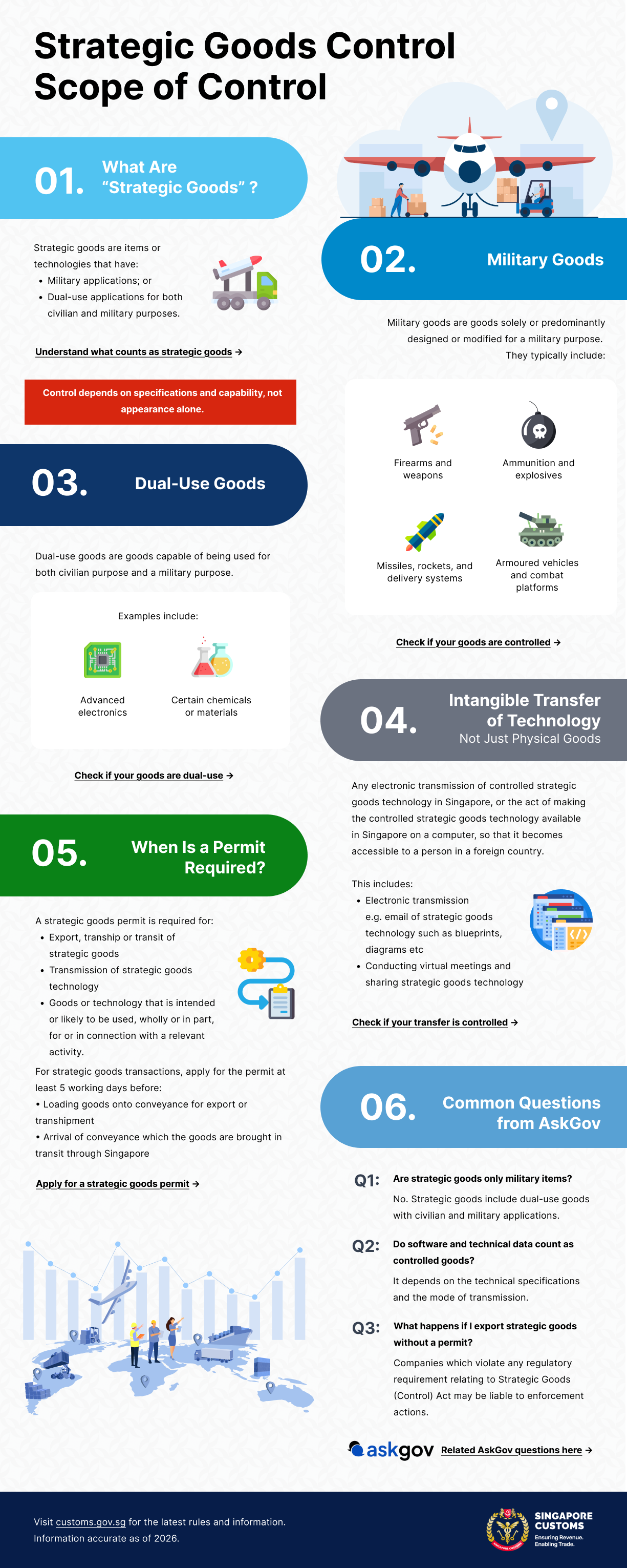 Learn what strategic goods are, why they matter, and how Singapore Customs upholds strong controls to ensure Singapore remains a responsible and secure global trading nation.